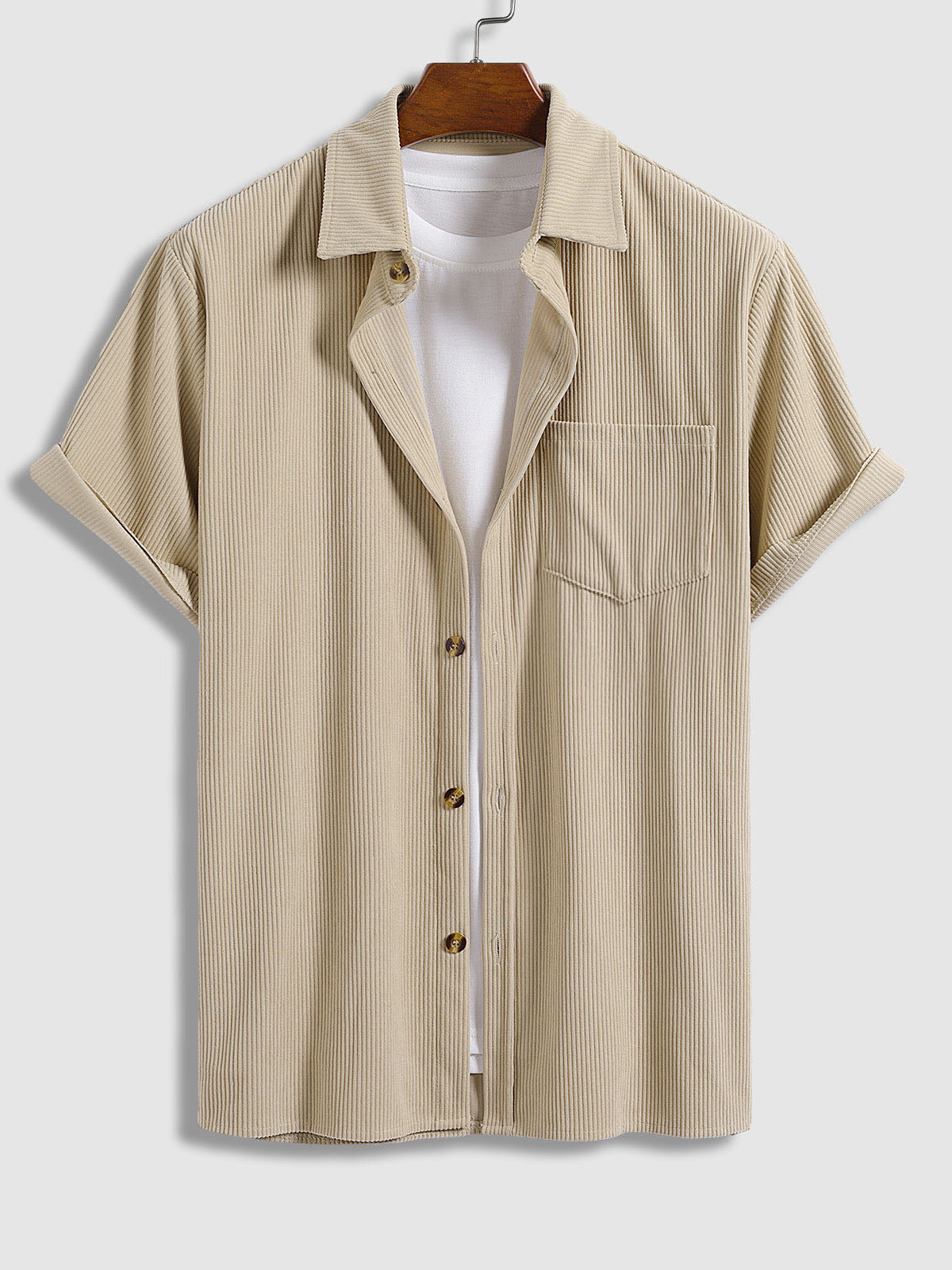 - Camisa de verano: Esta camisa de manga corta y corte relajado te mantiene fresco y elegante, tanto si vas a tomar el sol como a salir por la noche.